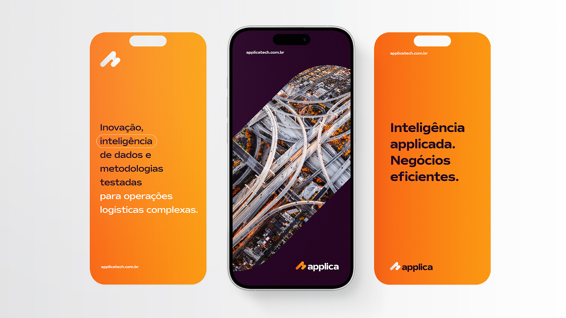 Criar a identidade visual e o site da Applica foi uma oportunidade de traduzir a essência de uma startup ousada, que transforma tecnologia e experiência em soluções logísticas inteligentes.